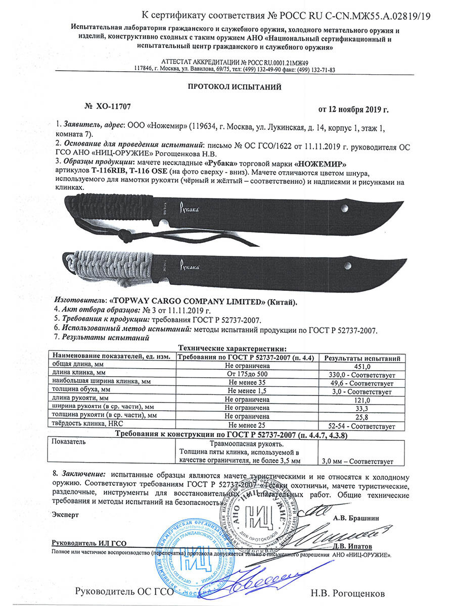 Мачете Рубака Осётр T-116 OSE с кордуровыми ножнами информация: