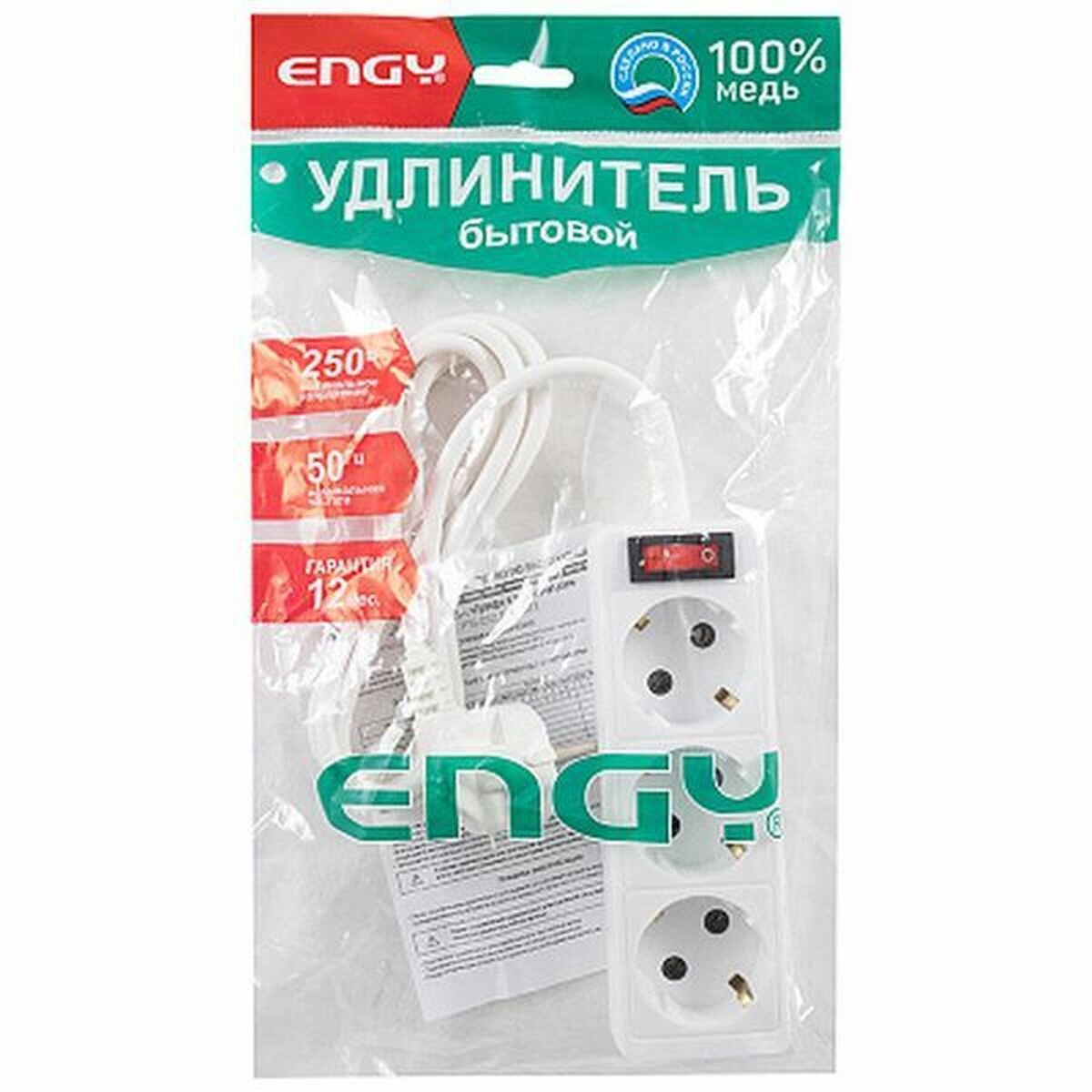 Удлинитель с выключателем Engy Гранд 2м/3роз с/з (ПВС 3х0,75) информация: