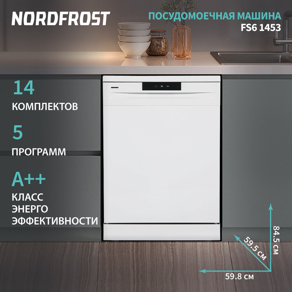 10 цен на Посудомоечная машина NORDFROST FS6 1453 W,отдельностоящая,5 программ, 3 корзины, цвет белый