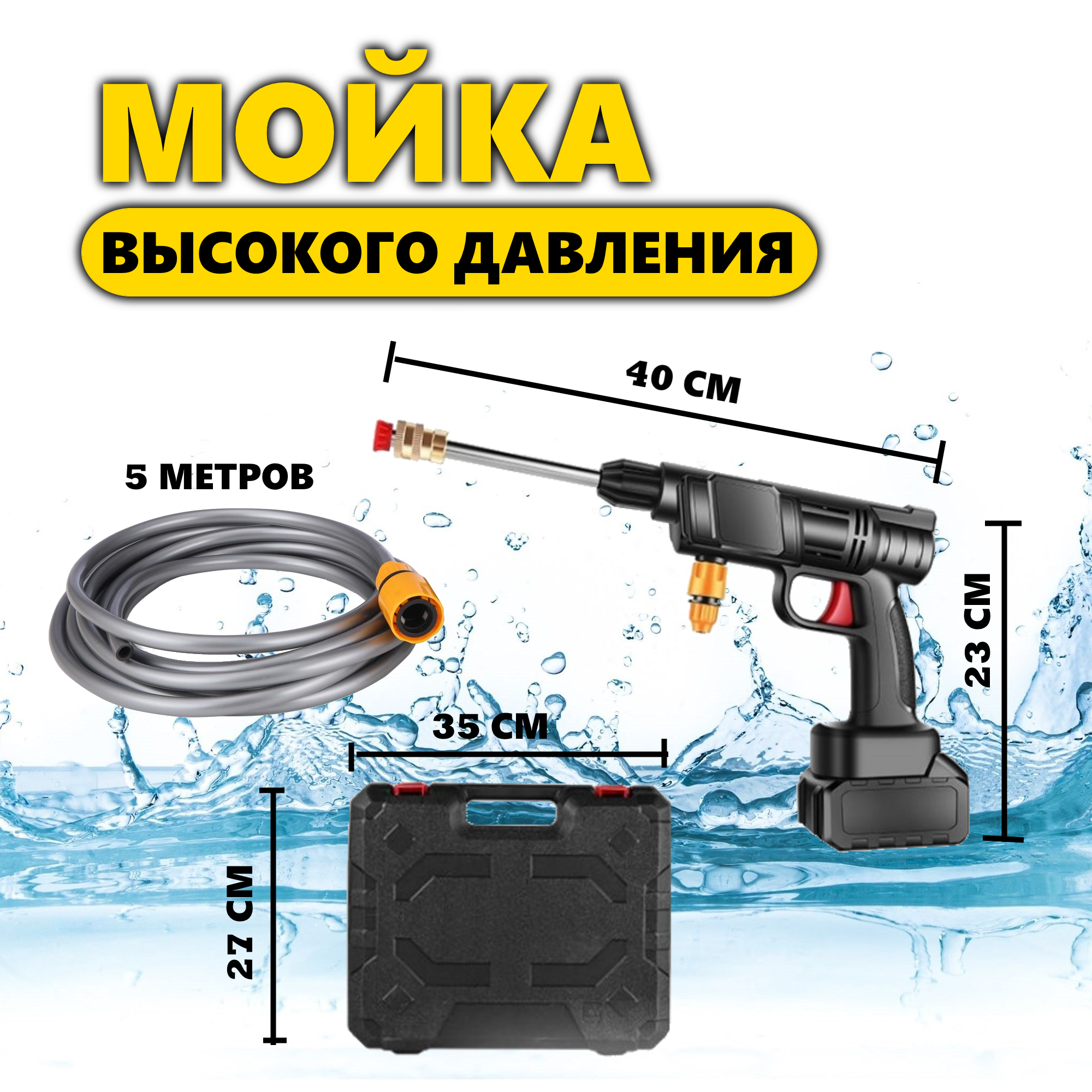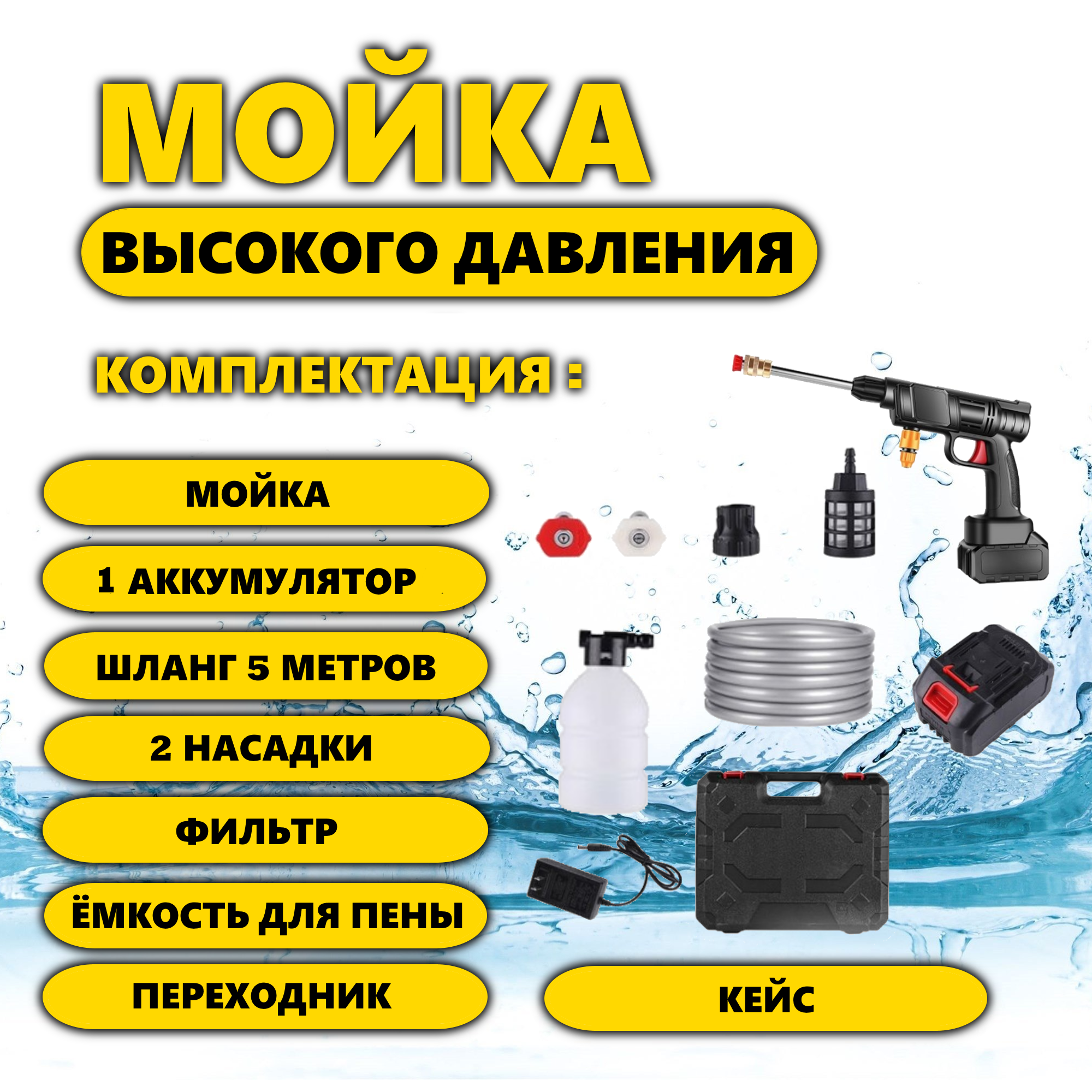 Автомойка аккумуляторная высокого давления с кейсом 2 аккумулятора. Минимойка