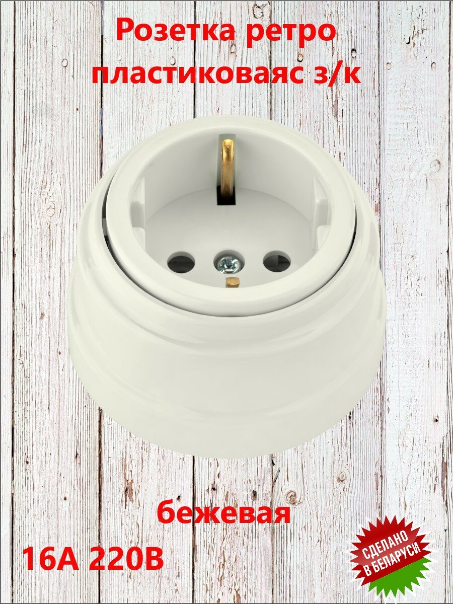 10 цен на Bylectrica ретро роз. ОУ 1 мест. БЕЖ. (земля, корп. ABS-пластик) (16А) РА16-0202