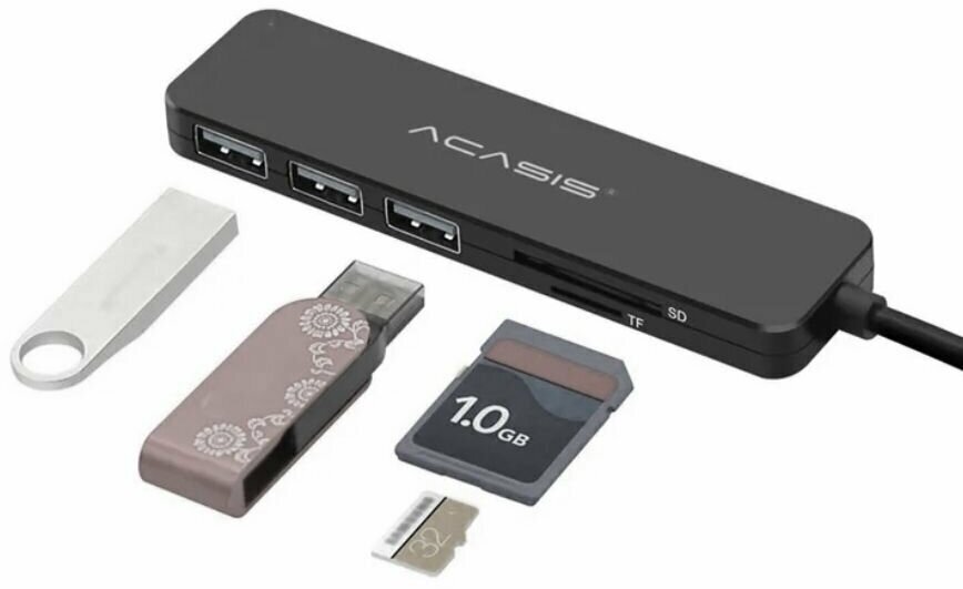 Отзывы на Хаб USB Acasis AB2-CL412 USB2.0 to 3 USB2.0 + TF/Memory Card - Черный