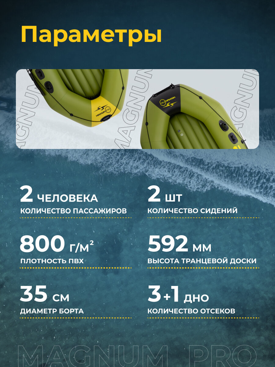 Характиристики этого товара не найдены!Отзывы на Лодка ПВХ под мотор надувная двухместная гребная для рыбалки Magnum PRO 300 зеленая грузоподьемность 290 кг
