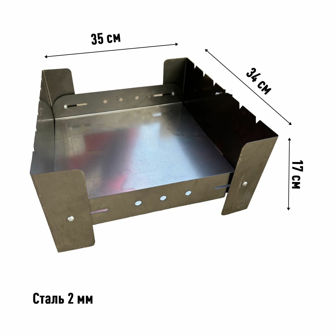Мангал 800 мм. с полкой-решёткой и полкой под казан, сталь рифленая-усиленная 3 мм. разборный, с полкой под дрова