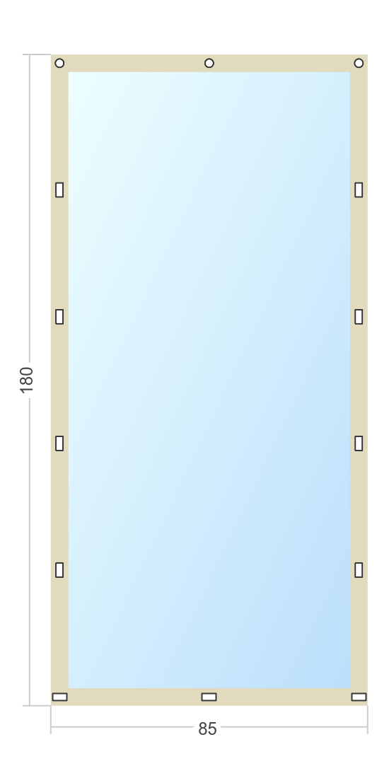 Мягкое окно Софтокна 85х180 см, Прозрачная пленка 0,7мм, Скоба-ремешок, Бежевая окантовка, Комплект для установки информация: