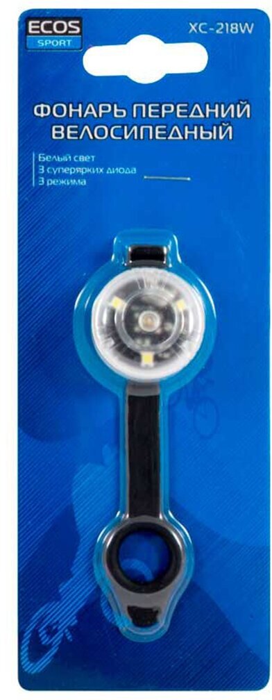 Фонарь ECOS XC-218W, передний, LED, 3 режима, влагозащищенный, батарейки 261 ₽