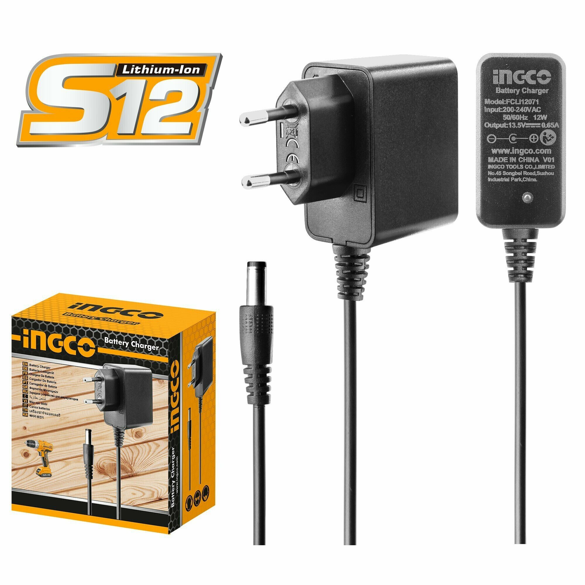 Зарядное устройство INGCO FCLI12071, 12 В, номинальное напряжение 100-240 В, для линейки S12