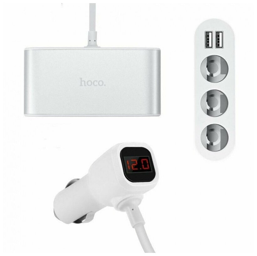 10 цен на Разветвитель прикуривателя HOCO, Z13, на 3 прикуривателя, 2 USB выхода, со шнуром, цвет серебряный