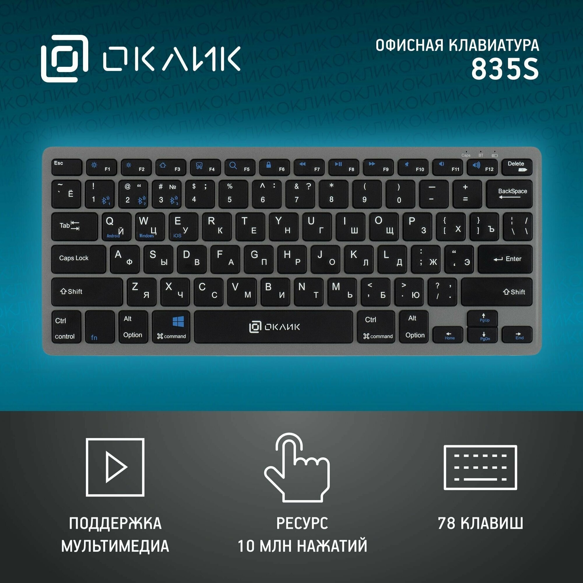 Клавиатура Oklick Оклик 835S черный/серый USB беспроводная slim Multimedia информация: