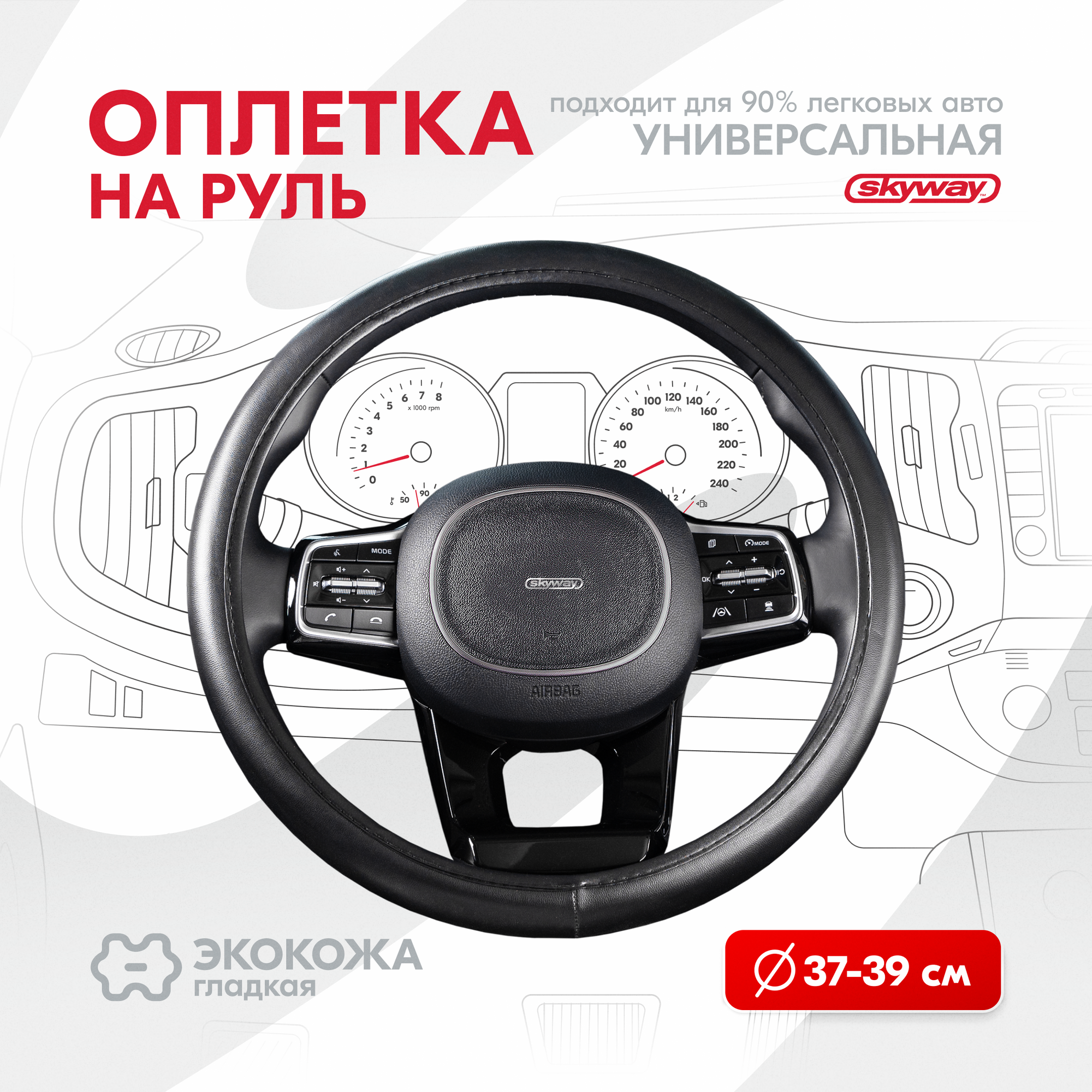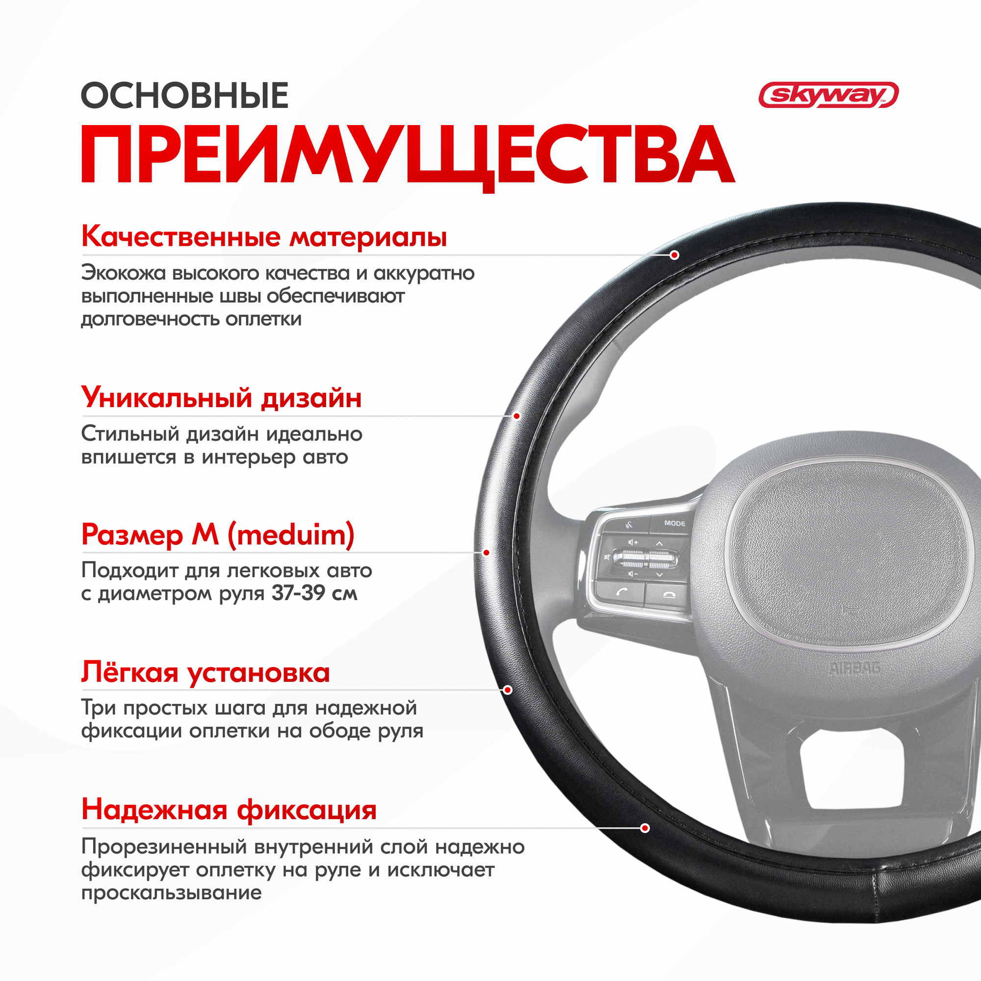 10 цен на SKYWAY S01102050 Оплетка на руль Top-2 экокожа, Черная M; SKYWAY