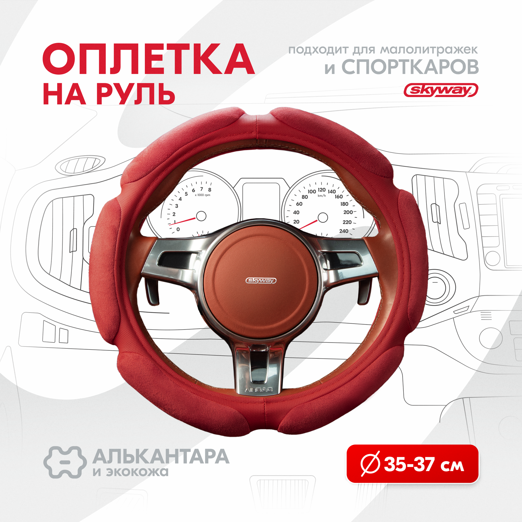 Оплетка на руль Sponge classic SKYWAY S (35-37) красный алькантара 6 подушечек, S01101057 информация: