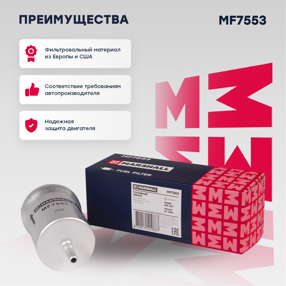 MARSHALL MF7553 Фильтр топливный Audi A2 (8Z) 00-, Skoda Fabia I (6Y) 99-, VW Polo IV 01- (MF7553)