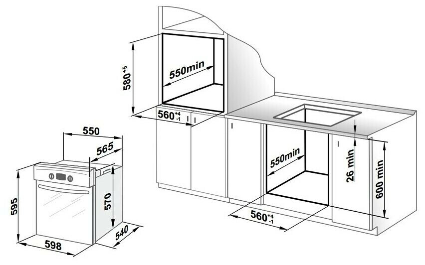Духовой шкаф встраиваемый LEX EDM 077 C IV, 60 см, с конвекцией, механические ручки, объем 60 л, аналоговый таймер, телескопические направляющие.