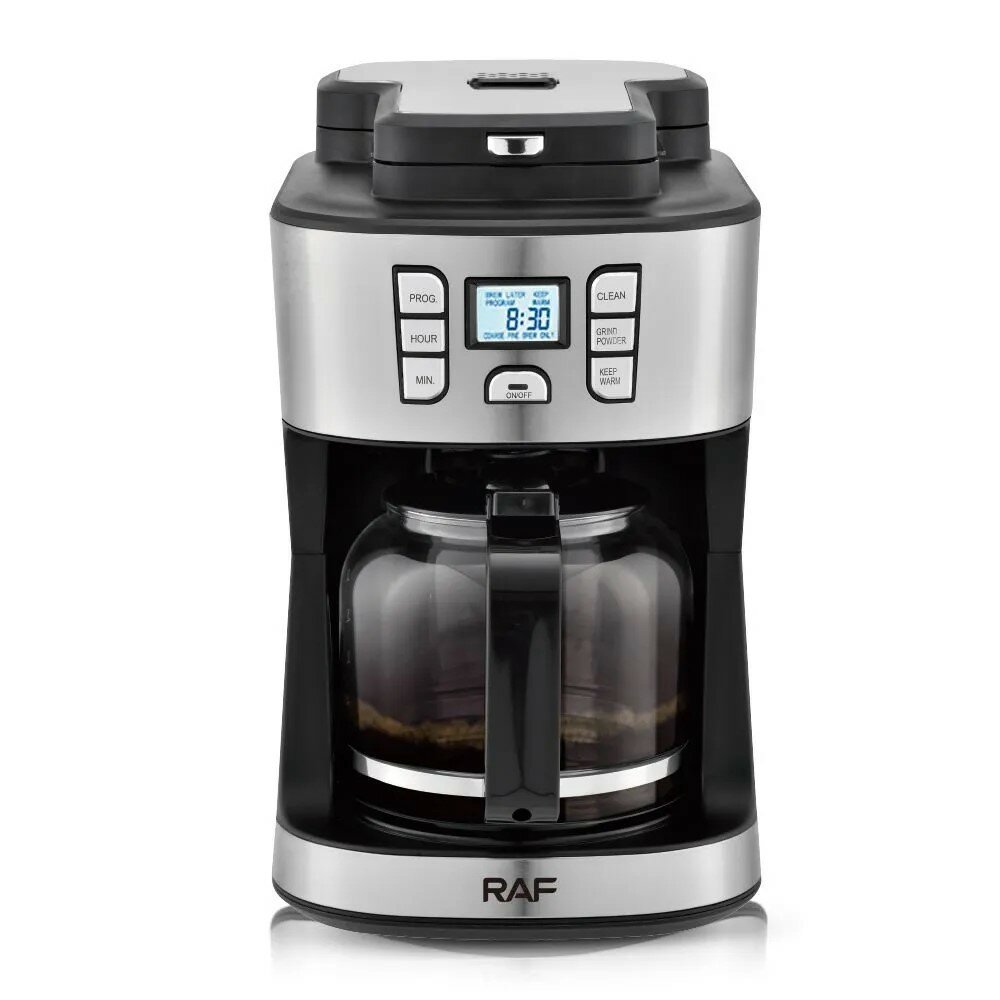 10 цен на Кофемашина 2в1, кофемашина для дома, автоматическая кофемашина, 1000Вт, объем 1.8 литра, настройка температуры кофе,RAF