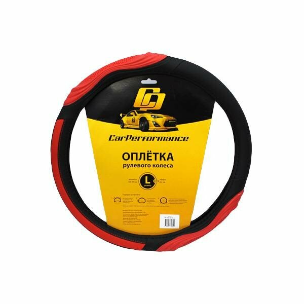 Оплётка руля CAR PERFORMANCE CP-2050 BK/RD (L), экокожа, две 3D вставки под хват, гладкая основа чёрн./красный, разм. L,
