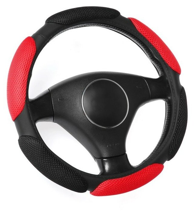 10 цен на TORSO Оплетка на руль TORSO, анатомическая, 6 подушек, размер 38 см, черно-красный