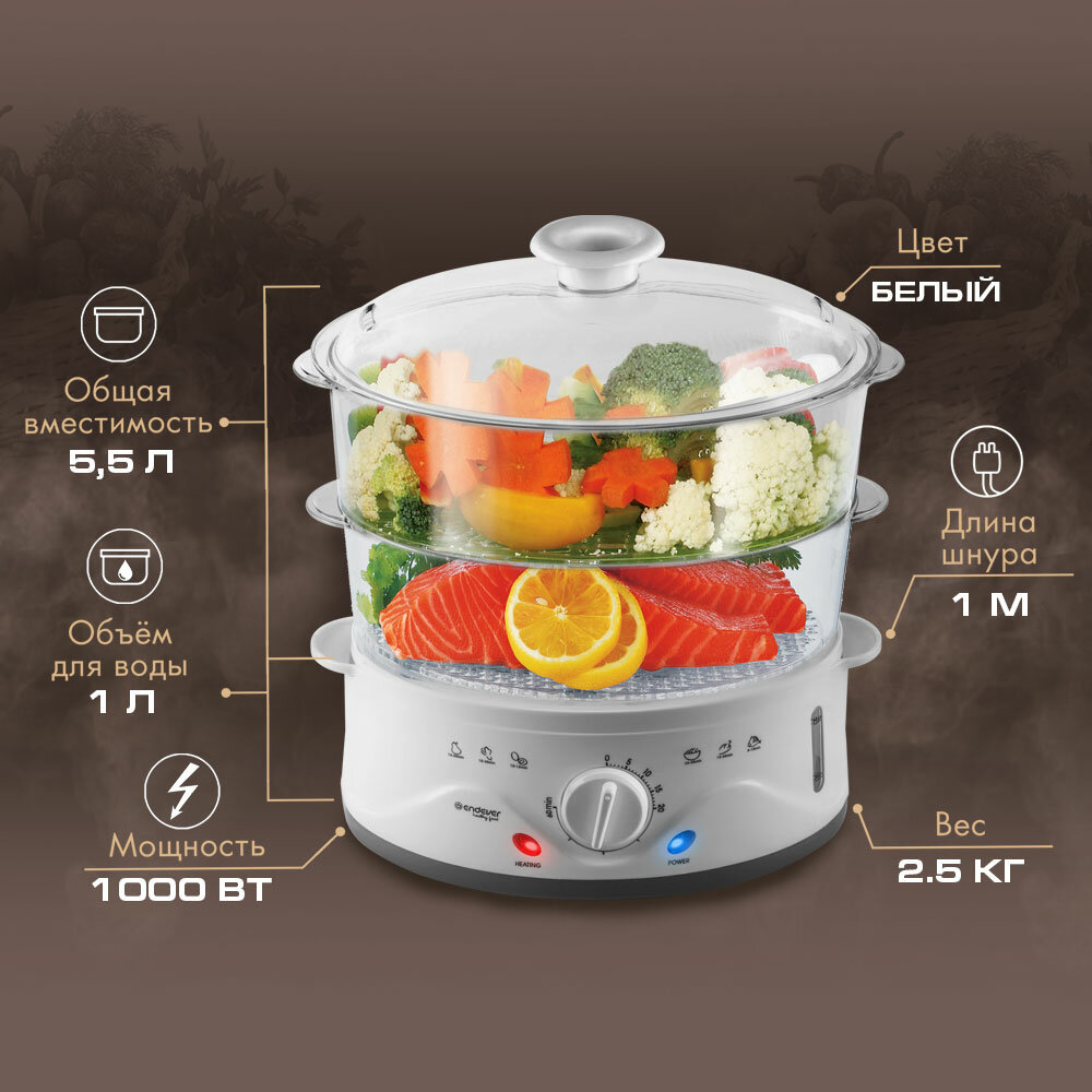 10 цен на Пароварка электрическая Endever Vita-176 (90336) белый