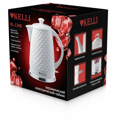 Чайник электрический KELLI KL-1340, керамический, объём 1.8 л