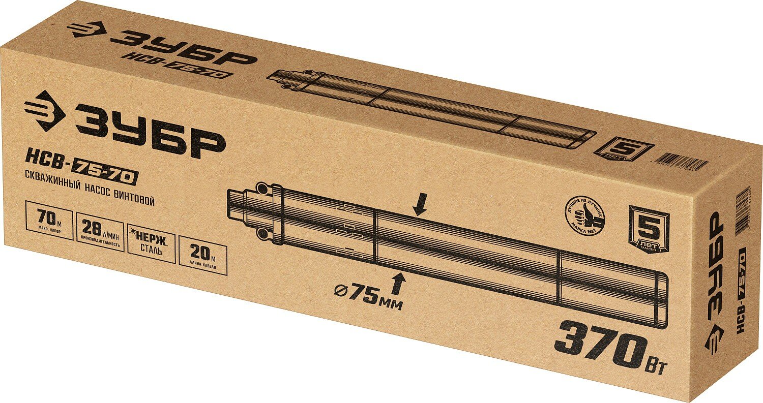ЗУБР 370 Вт, 70 м напор, скважинный насос винтовой, корпус из нержавеющей стали (НСВ-75-70)