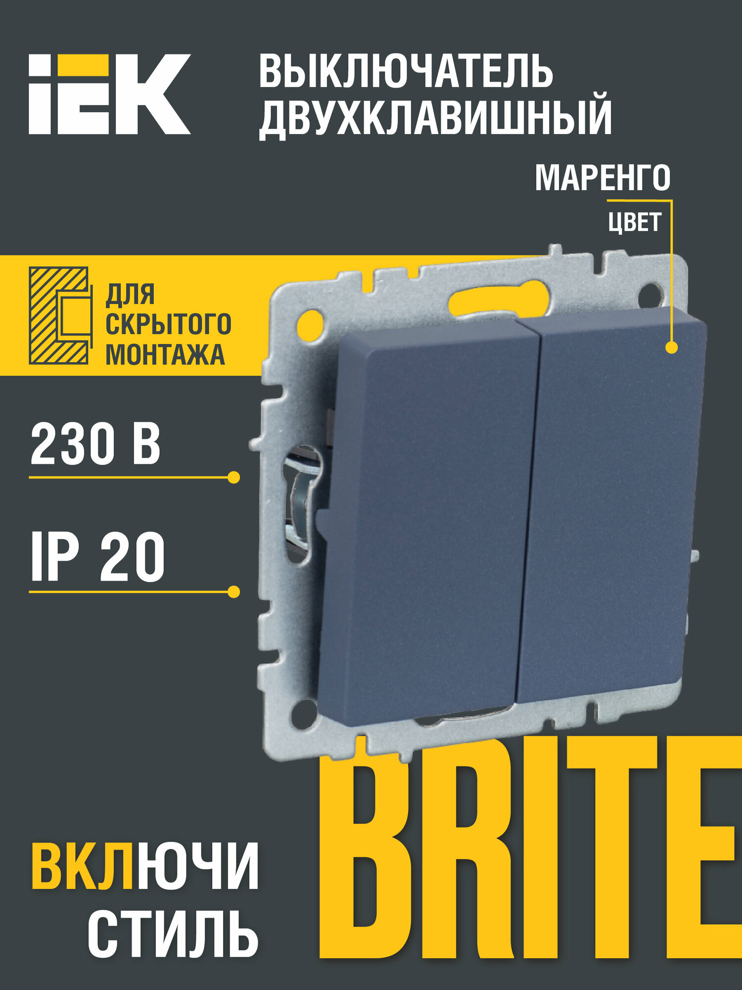 IEK BRITE Выключатель 2-клавишный 10А ВС10-2-0-БрМ маренго информация: