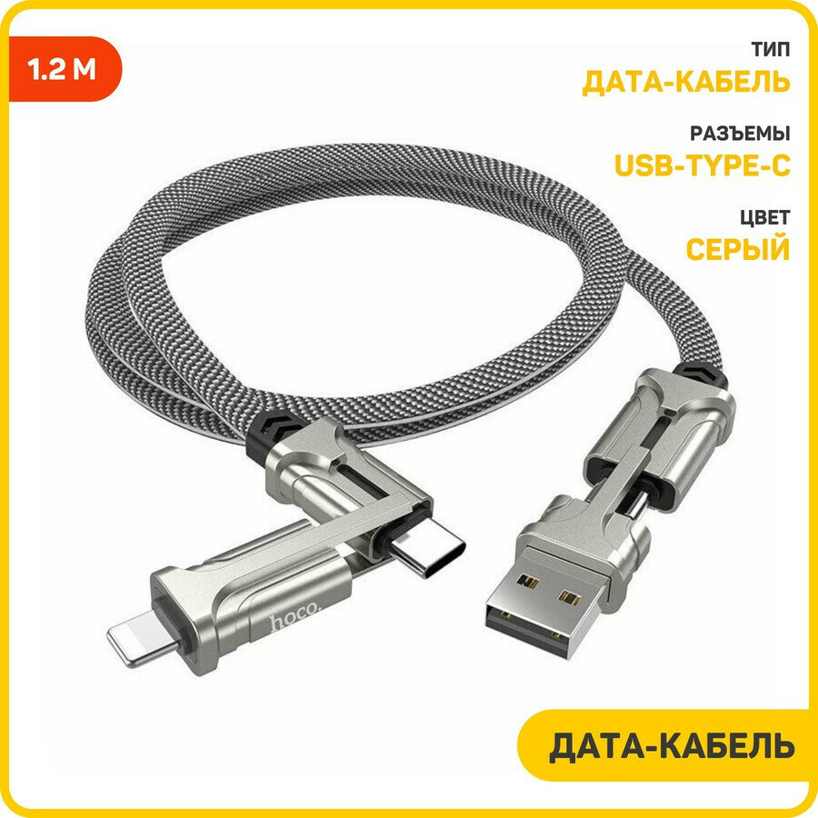 Дата-кабель Hoco S22 USB/Type-C-Type-C/Lightning (3 А) 1.2 м, серый информация: