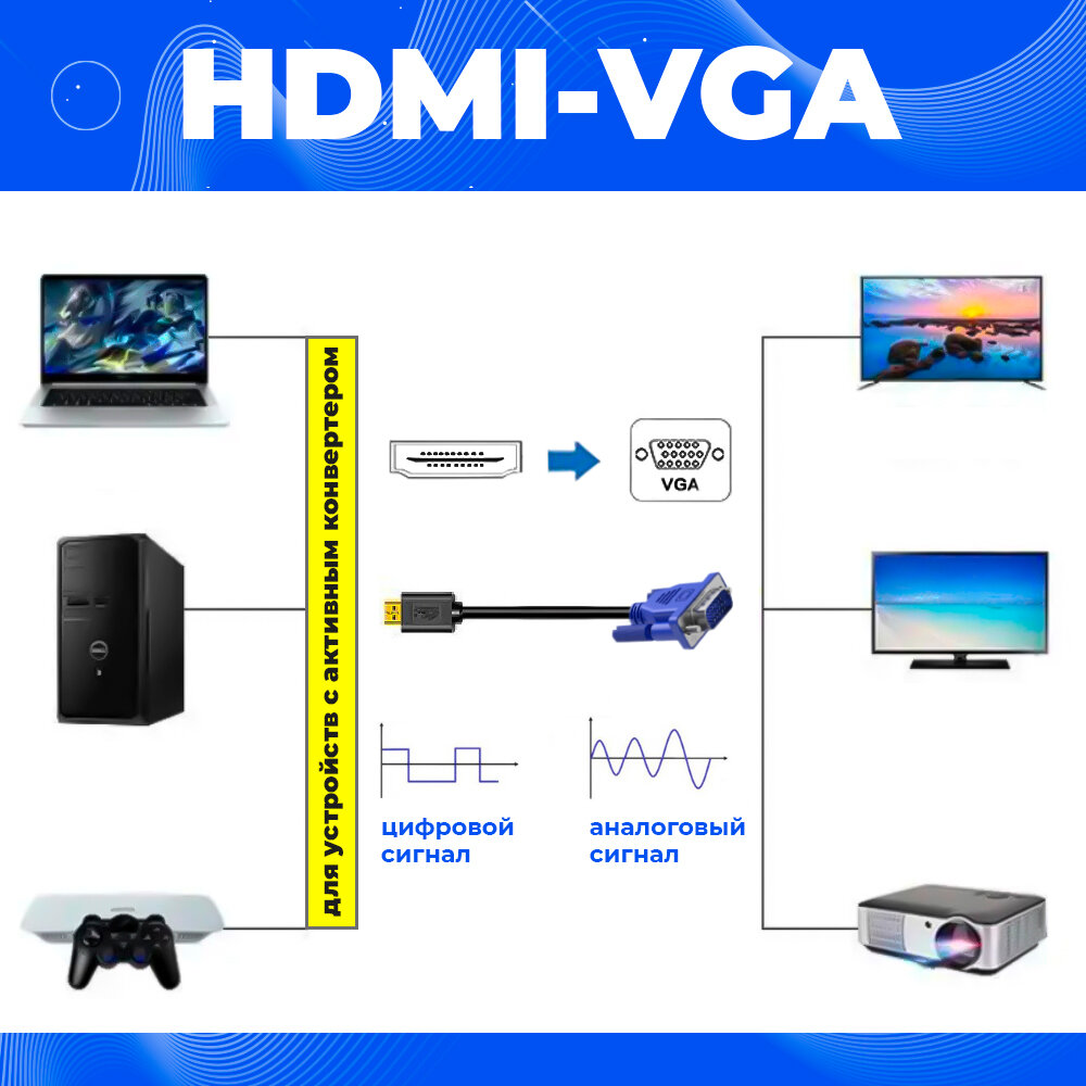 | Разъемы | HDMI (M) - VGA (M) |