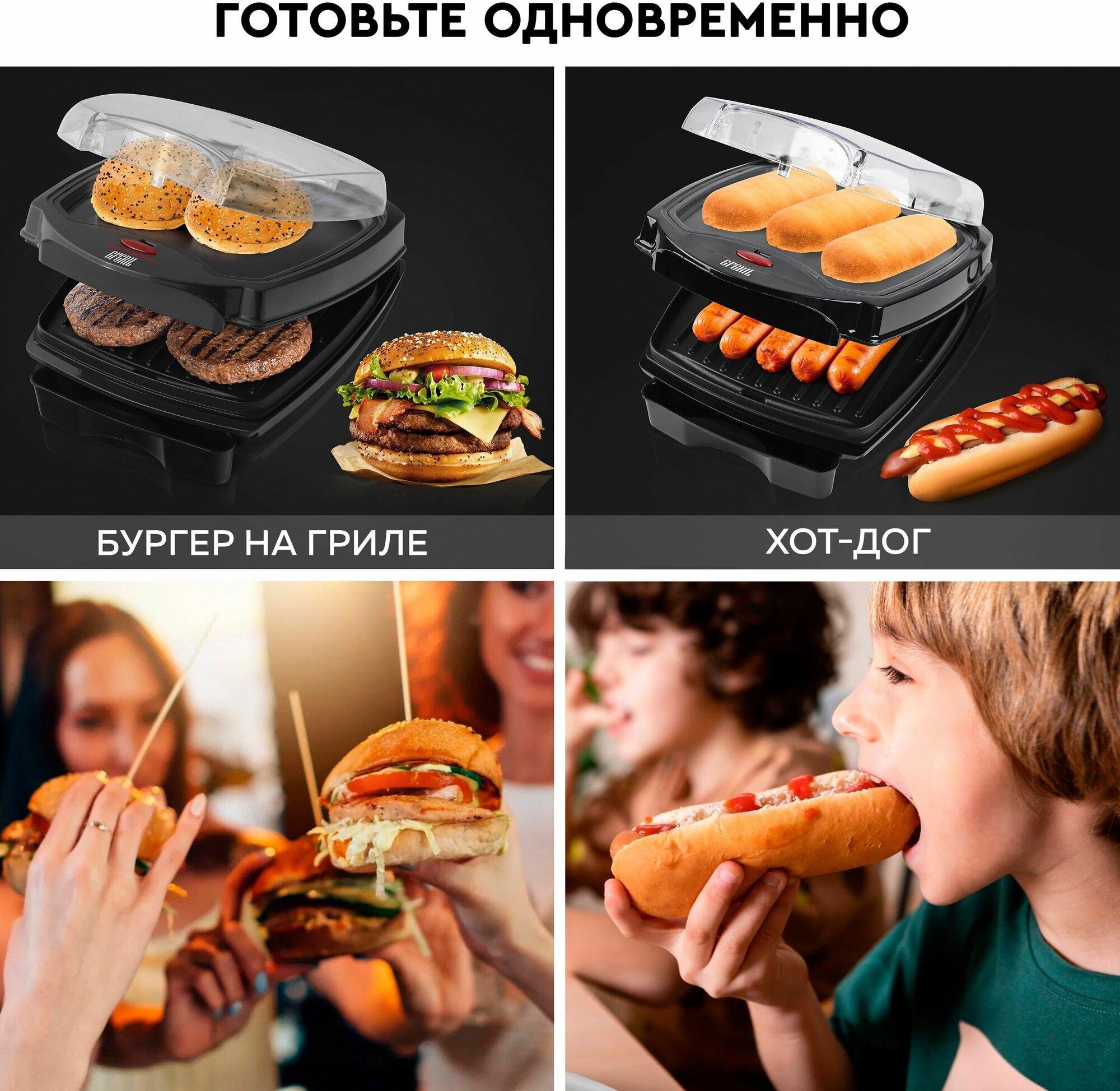 Отзывы на GFGRIL Электрический гриль GF-120, с отсеком для подогрева булочек, антипригарное покрытие.