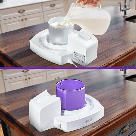 10 цен на Мороженица-йогуртница КТ-4056, 9,5/12 Вт, пластик/алюминий, 0,5/1 л, бело-фиолетовый