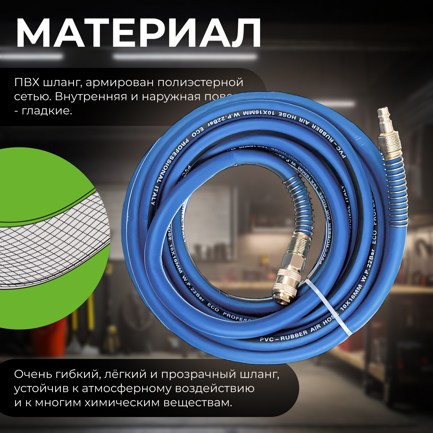 Шланг ПВХ армированный ECO 10/16 мм 20 м с быстросъемами (AHF-2010) информация: