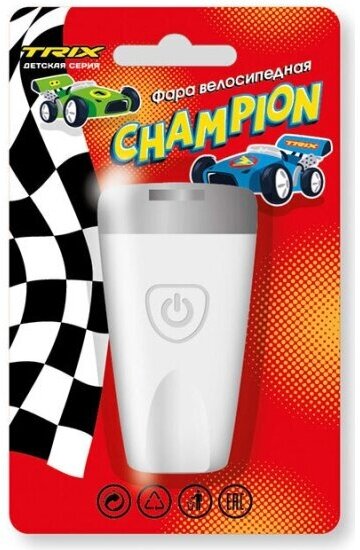 Фара Trix Champion детская, передняя, 1 супер яркий белый диод, линза,3 режима, силикон, белая информация:
