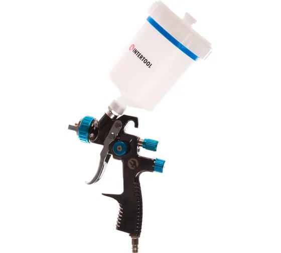 10 цен на INTERTOOL Краскопульт пневматический LVLP BLUE , форсунка 1.4мм, бачок 600мл., 1.5бар PT-0134