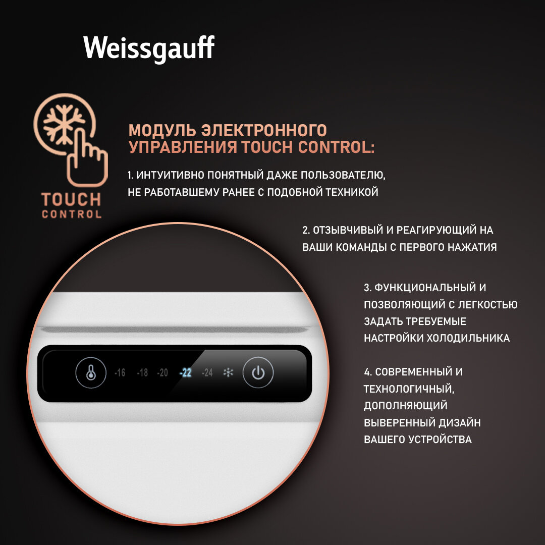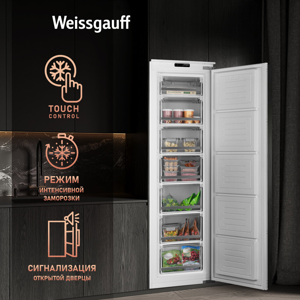 Встраиваемый морозильник Weissgauff WFI 178 Freez Электронное управление, Возможность установки Side-By-Side, 3 года гарантии 48 290 ₽
