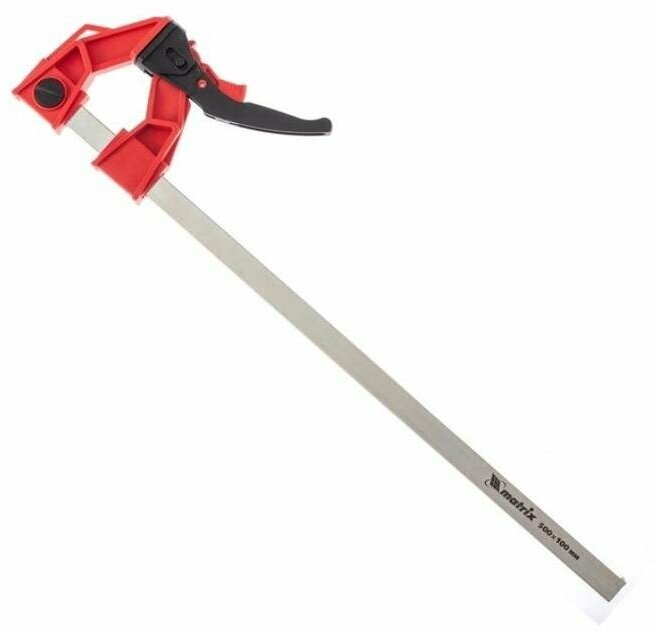 Отзывы на Струбцина реечная быстрозажимная, усиленная, пластиковый корпус рычажно-храповой механизм, 500 х 100 х 661 мм, штанга 5 х 22 мм Matrix [20729]