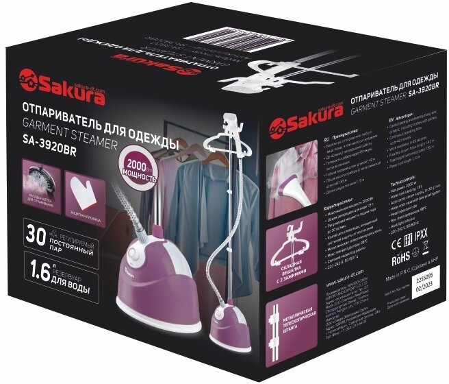Отпариватель Sakura SA-3920BR "Ягодный" 1.6л 2000Вт информация: