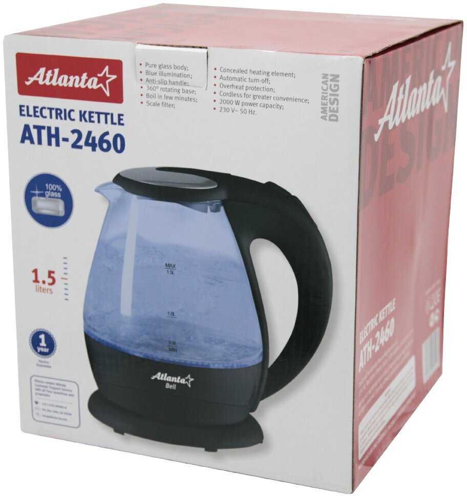 Чайник электрический ATLANTA ATH-2460 (black) стеклянный информация: