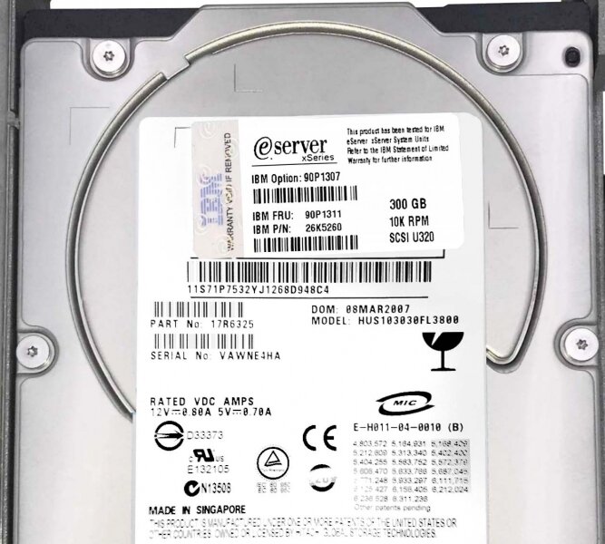 Жесткий диск IBM 90P1307 300Gb 10000 U320SCSI 3.5" HDD информация: