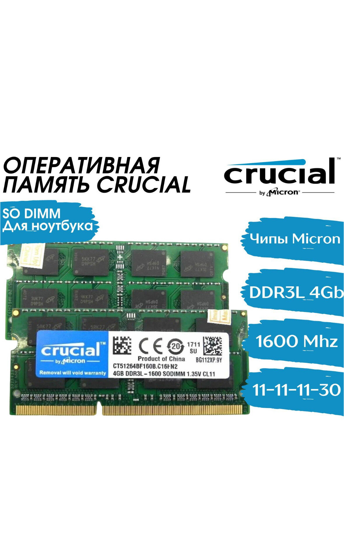 Оперативная память Crucial 4Gb DDR3L 1600 МГц CL11 для ноутбука информация: