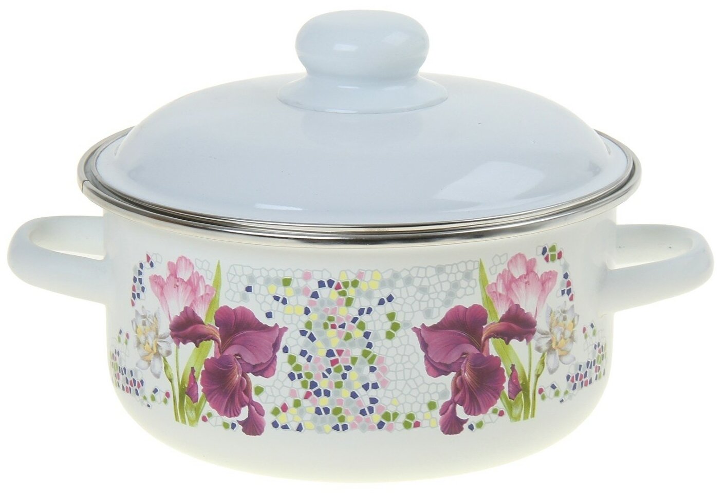 Стальэмаль Кастрюля Мозаика 1,5 л, d15 см, металлическая крышка, цвет белый