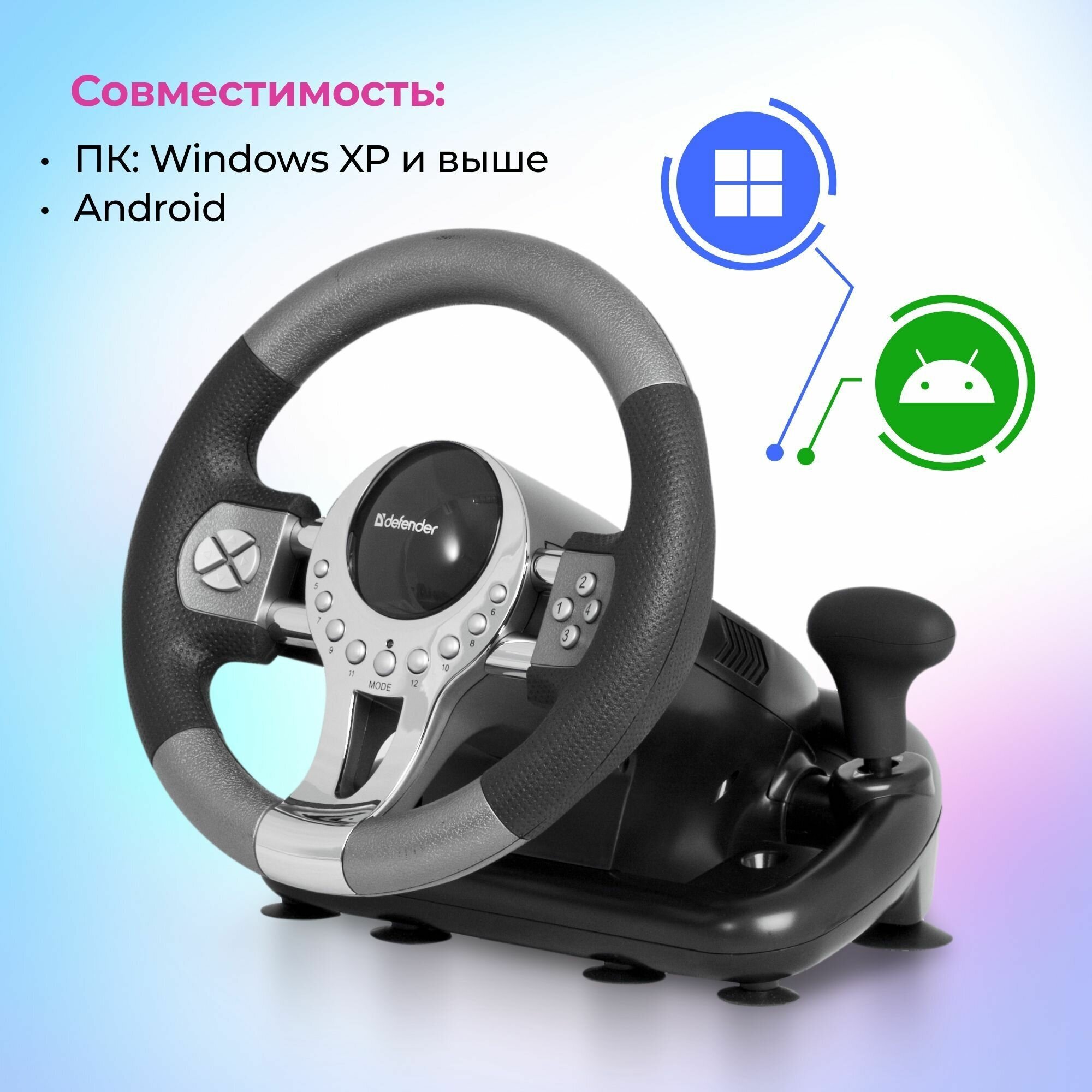 Игровой руль Defender Forsage GTR Usb, 12 кнопок, рычаг передач [64367] .