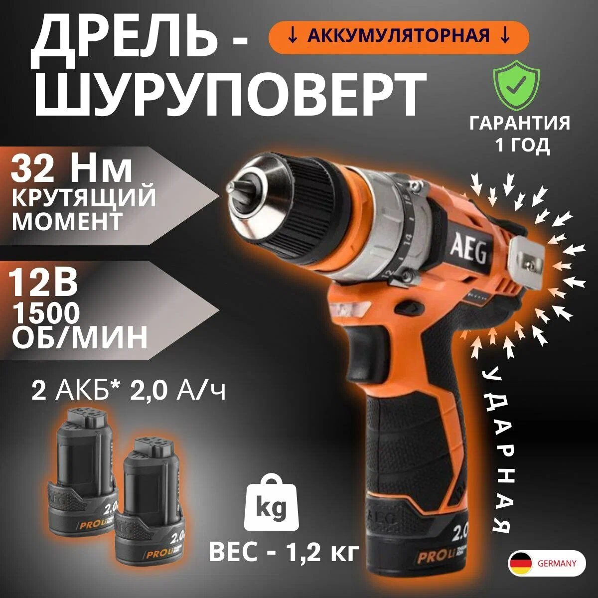 Аккумуляторная дрель AEG Powertools BBS 12C2 LI-202B (2 аккумулятора 2 Ач зарядное устройство ) информация: