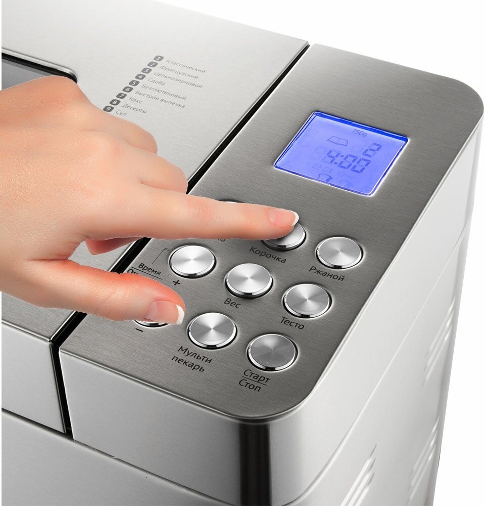 Первое, что бросается в глаза, это сам внешний вид устройства. Корпус из стали подойдет под любую кухню и будет надежно служить долгое время. Что касается хлебопечки, в ней имеется 25 программ, которые включают в себя не только выпекание хлеба, но и приготовление различных блюд и десертов. Не нужно самим замешивать тесто и настаивать его, хлебопечка сама все сделает, нужно лишь засыпать необходимое количество ингредиентов, выбрать нужную программу и подождать.