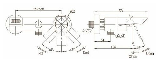 Смеситель на раковину настенный Эверест B46-350 с круглым поворотным изливом, кран-буксы 1/2", хром