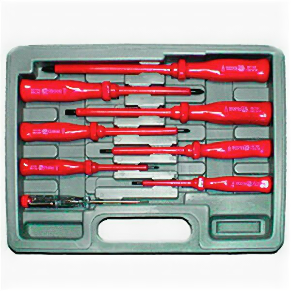 Отвертки диэлектрические до 1000 В, CrV сталь, пластик. ручки, в чемоданчике, набор 8 шт.+ 1 индикаторная FIT 56127 электротовар