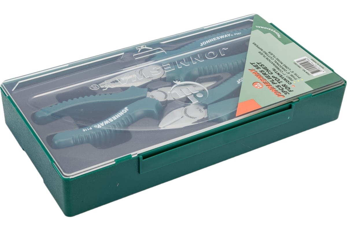 Набор шарнирно-губцевого инструмента в ложементе с пластиковой крышкой, 3 предмета Jonnesway 6 081 ₽