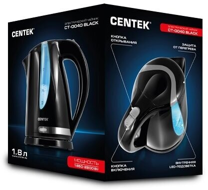 Чайник Centek CT-0040 Black /1,8л, 2200Вт