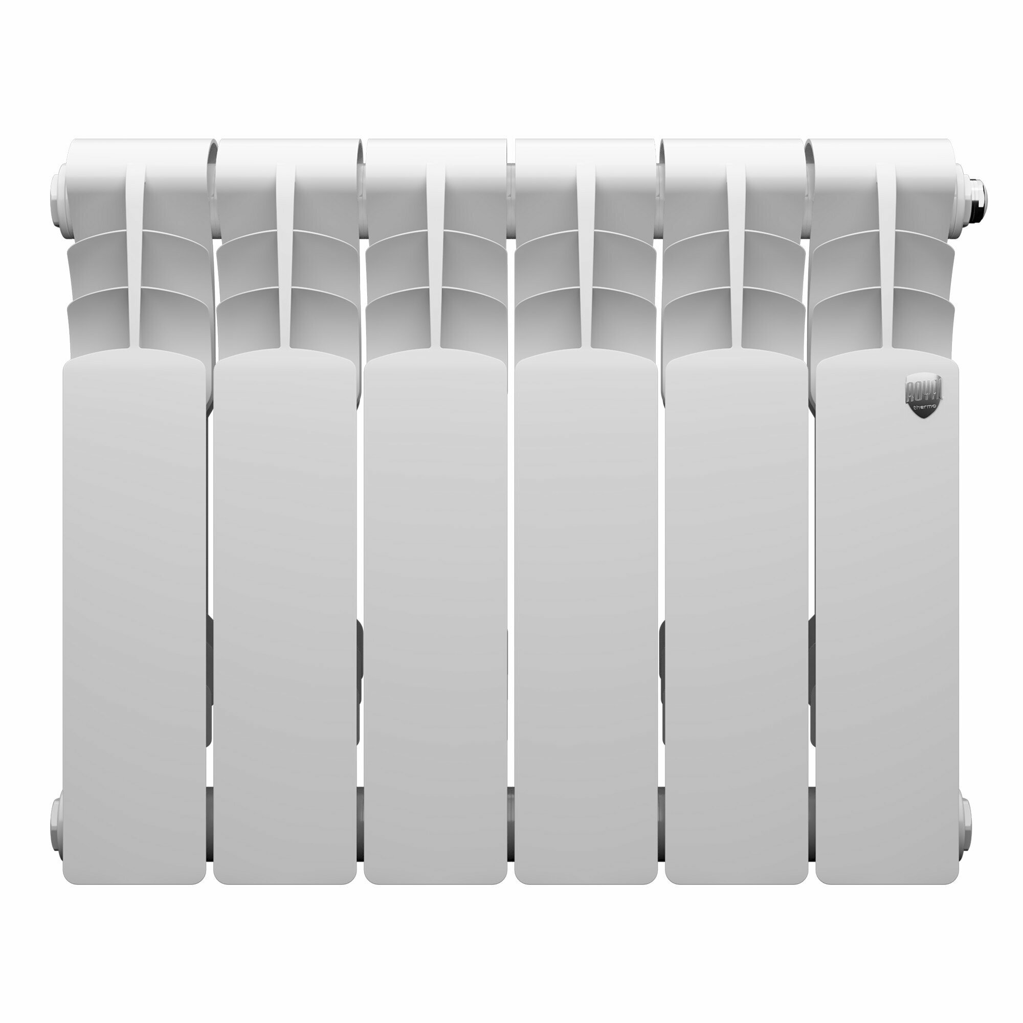 Радиатор секционный Royal Thermo Revolution Bimetall 350, кол-во секций: 6, боковое подключение, 7.26 м2, 726 Вт, 480 мм.подключение: универсальное боковое