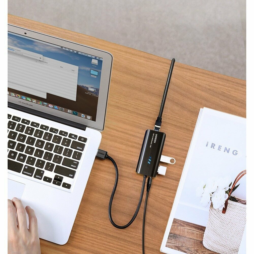 Сетевой адаптер UGREEN 20265 USB 3.0 Hub with Gigabit Ethernet, черный
