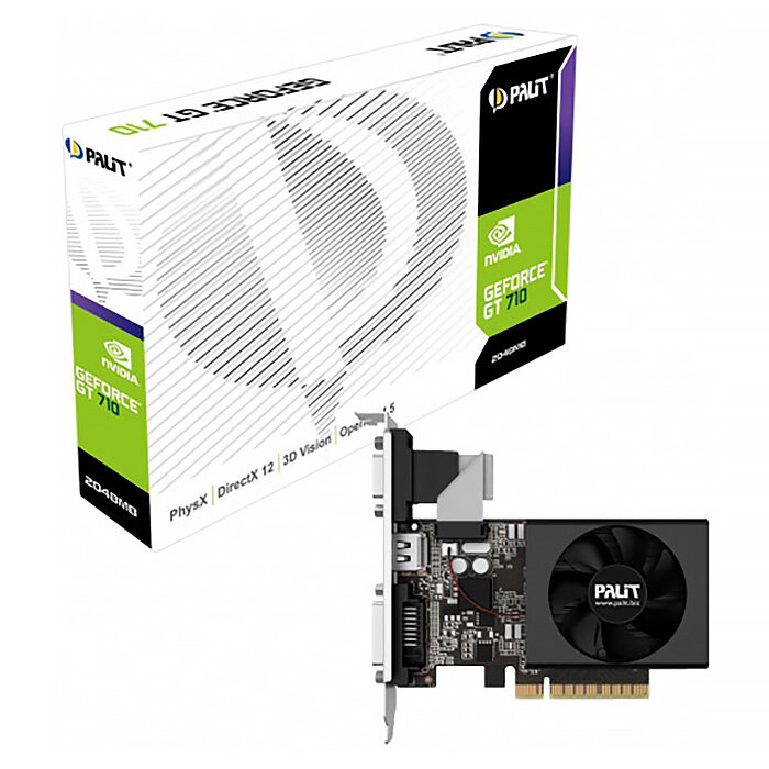 Видеокарта PALIT GT710 2048M GDDR3, 64 бит, DVI-D, HDMI, VGA (D-Sub)