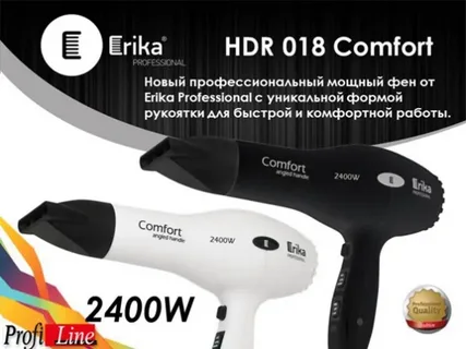 Отзывы на Фен профессиональный ERIKA PROFESSIONAL HDR-018B, 2400 Вт черный