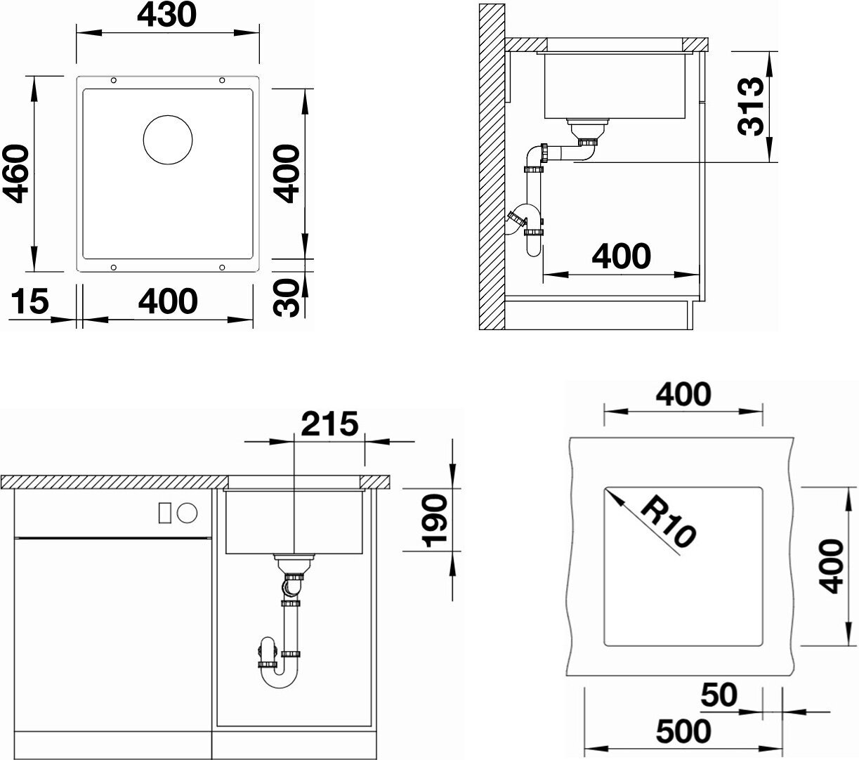 Кухонная мойка под столешницу BLANCO ETAGON 500-U